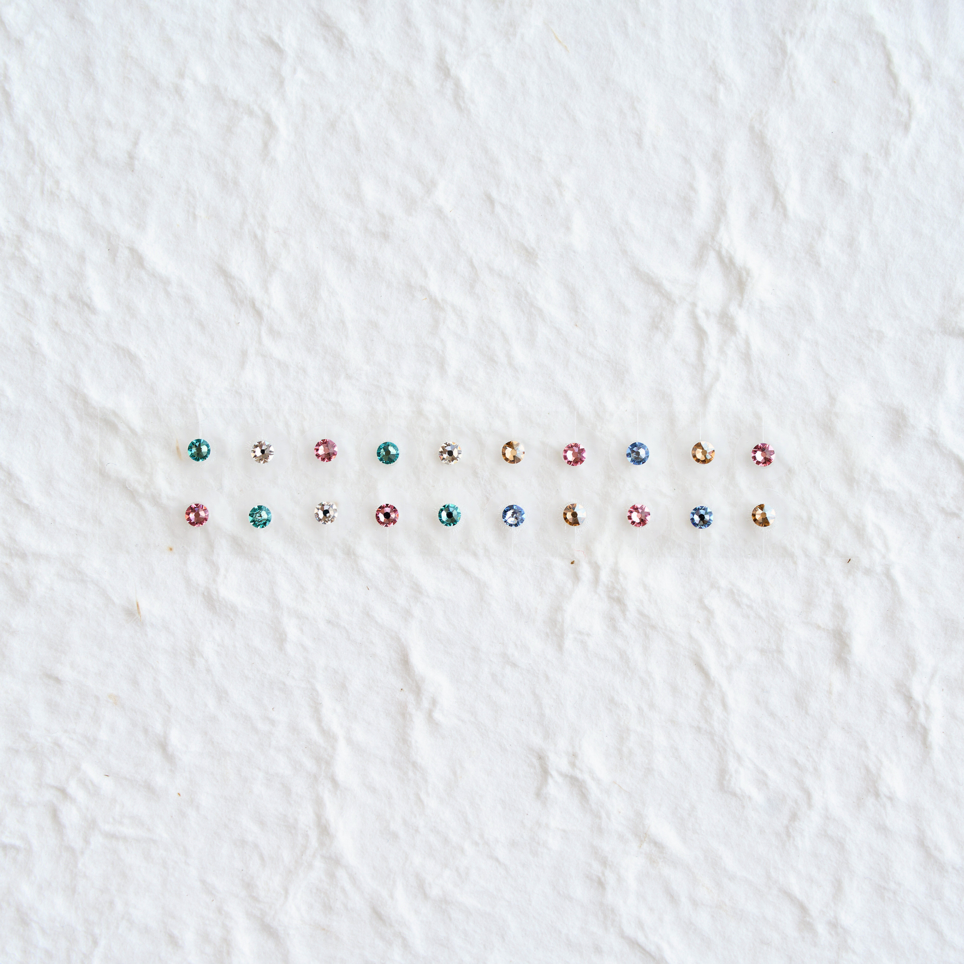 パーツには、ピンク・ブルー・グリーン・ホワイト・ゴールドなど、